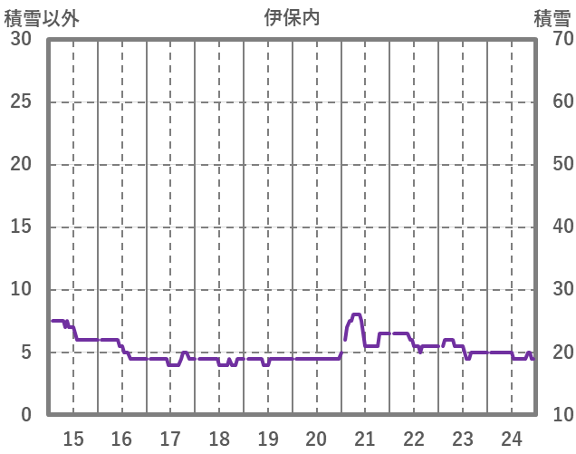 | 日 | 時 | 気温 | 降水 | 風向/風速 | 日照 | 積雪 | 降雪 |