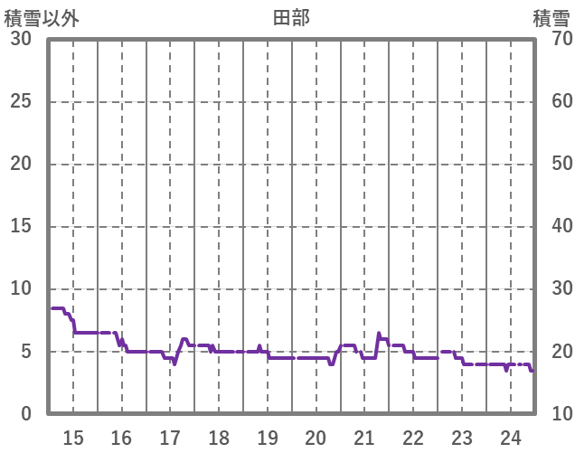 | 日 | 時 | 気温 | 降水 | 風向/風速 | 日照 | 積雪 | 降雪 |