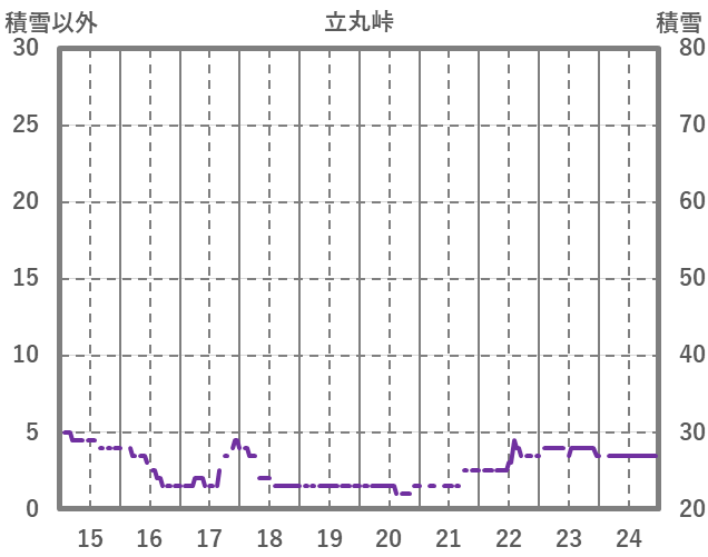 | 日 | 時 | 気温 | 降水 | 風向/風速 | 日照 | 積雪 | 降雪 |