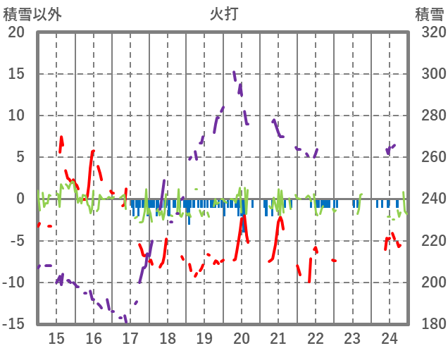 | 日 | 時 | 気温 | 降水 | 風向/風速 | 日照 | 積雪 | 降雪 |