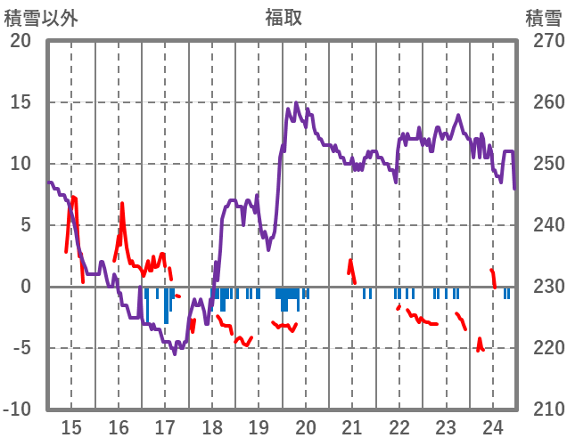 | 日 | 時 | 気温 | 降水 | 風向/風速 | 日照 | 積雪 | 降雪 |