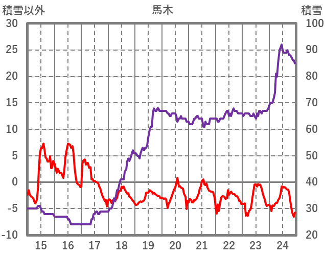 | 日 | 時 | 気温 | 降水 | 風向/風速 | 日照 | 積雪 | 降雪 |