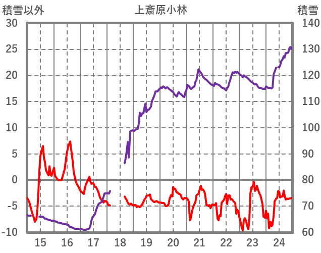 | 日 | 時 | 気温 | 降水 | 風向/風速 | 日照 | 積雪 | 降雪 |