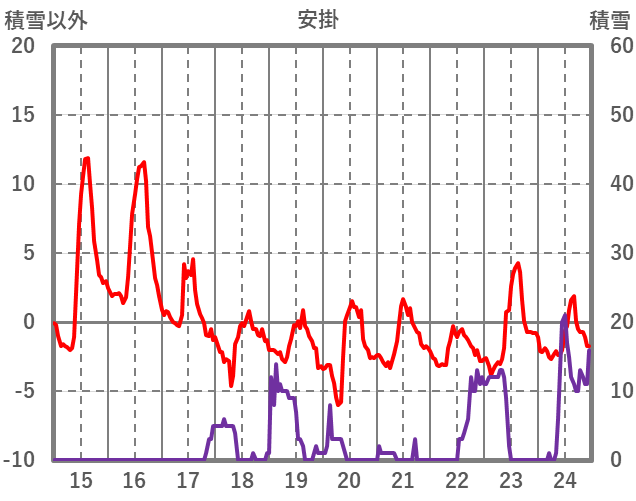 | 日 | 時 | 気温 | 降水 | 風向/風速 | 日照 | 積雪 | 降雪 |
