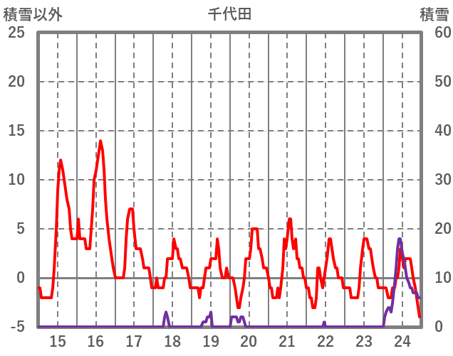 | 日 | 時 | 気温 | 降水 | 風向/風速 | 日照 | 積雪 | 降雪 |
