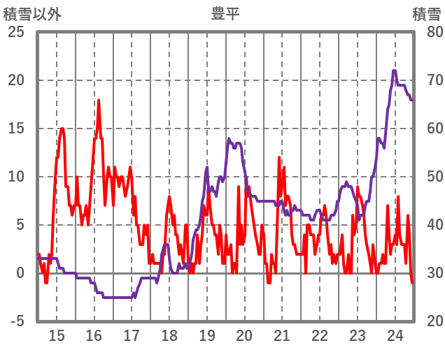 | 日 | 時 | 気温 | 降水 | 風向/風速 | 日照 | 積雪 | 降雪 |