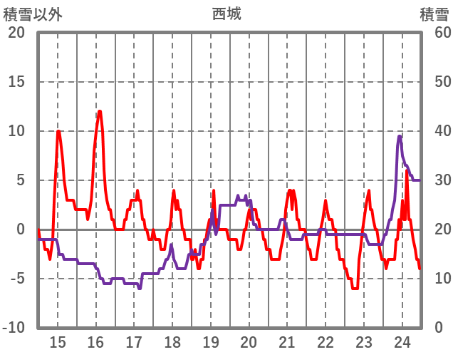 | 日 | 時 | 気温 | 降水 | 風向/風速 | 日照 | 積雪 | 降雪 |