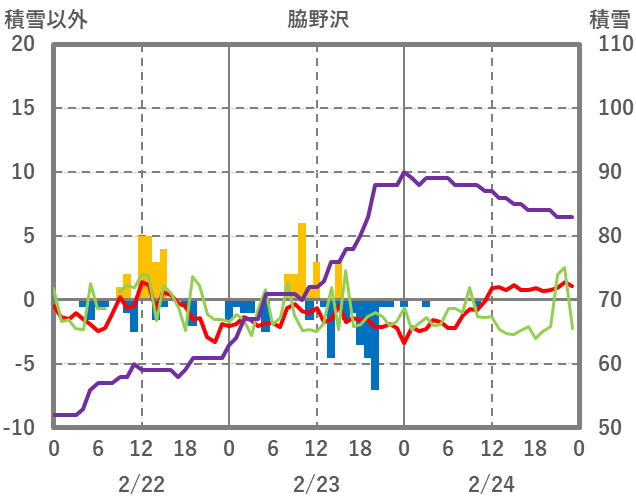 | 日 | 時 | 気温 | 降水 | 風向/風速 | 日照 | 積雪 | 降雪 |