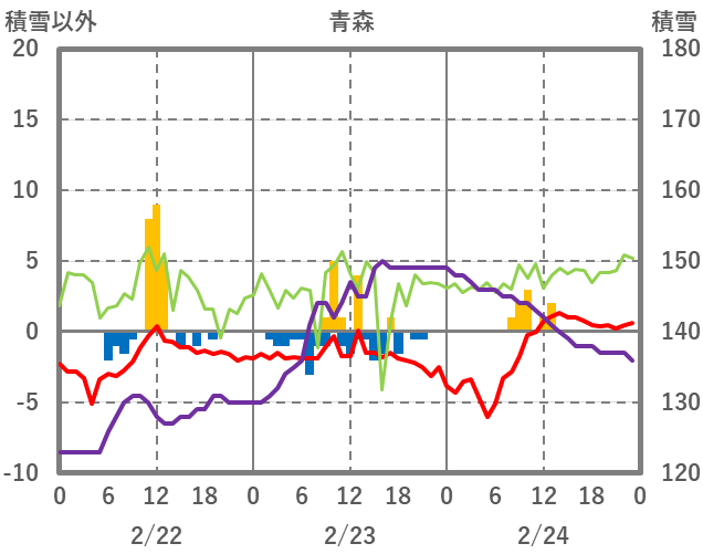| 日 | 時 | 気温 | 降水 | 風向/風速 | 日照 | 積雪 | 降雪 |
