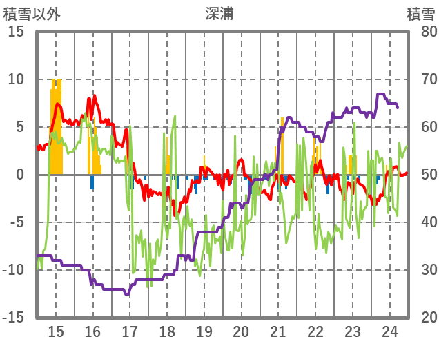 | 日 | 時 | 気温 | 降水 | 風向/風速 | 日照 | 積雪 | 降雪 |