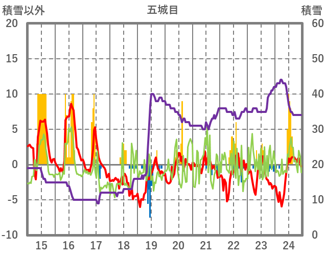 | 日 | 時 | 気温 | 降水 | 風向/風速 | 日照 | 積雪 | 降雪 |