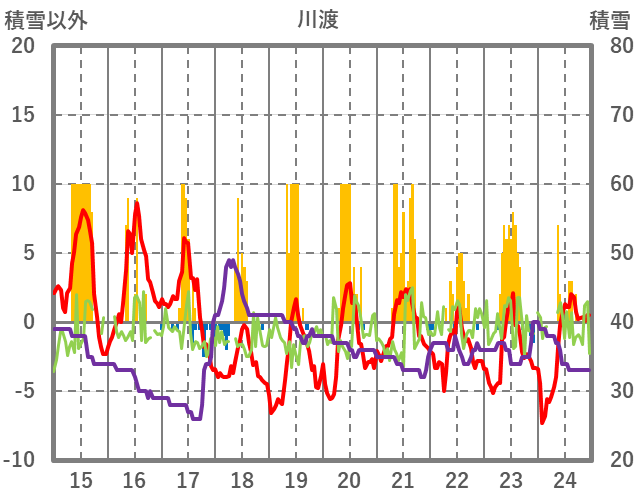 | 日 | 時 | 気温 | 降水 | 風向/風速 | 日照 | 積雪 | 降雪 |