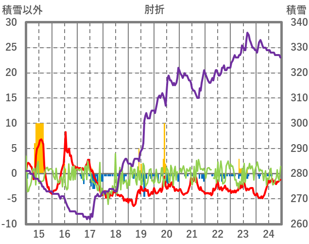 | 日 | 時 | 気温 | 降水 | 風向/風速 | 日照 | 積雪 | 降雪 |