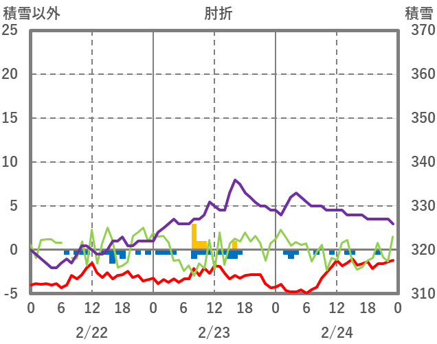 | 日 | 時 | 気温 | 降水 | 風向/風速 | 日照 | 積雪 | 降雪 |