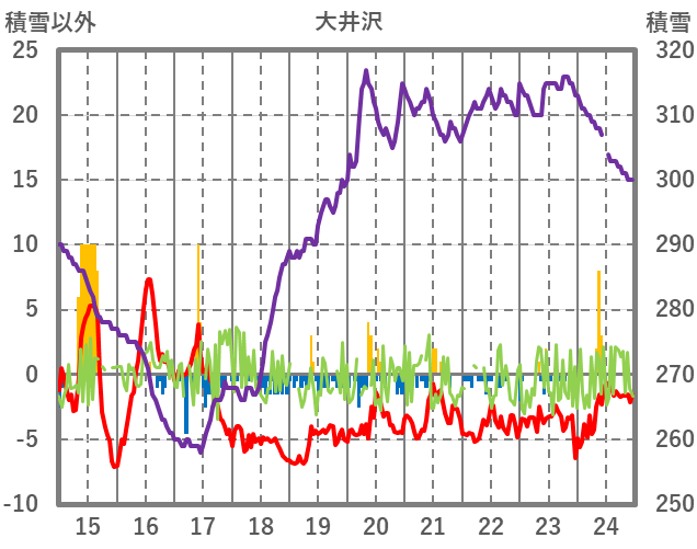 | 日 | 時 | 気温 | 降水 | 風向/風速 | 日照 | 積雪 | 降雪 |