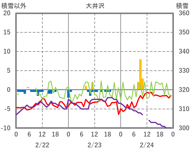 | 日 | 時 | 気温 | 降水 | 風向/風速 | 日照 | 積雪 | 降雪 |