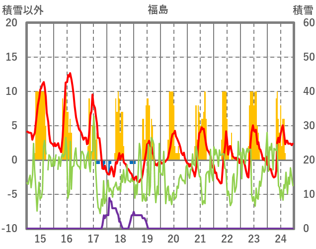 | 日 | 時 | 気温 | 降水 | 風向/風速 | 日照 | 積雪 | 降雪 |