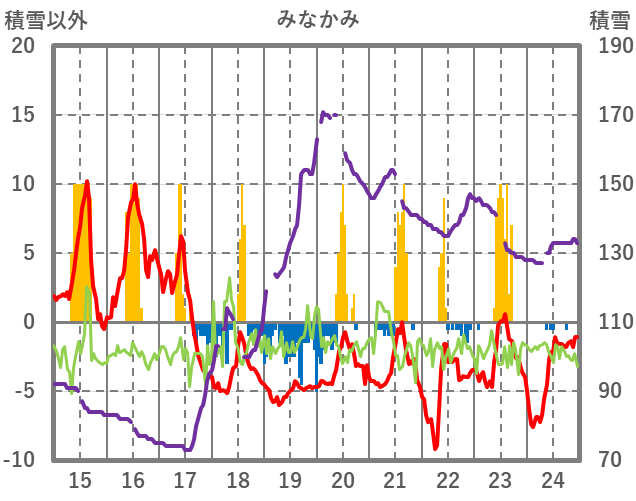 | 日 | 時 | 気温 | 降水 | 風向/風速 | 日照 | 積雪 | 降雪 |