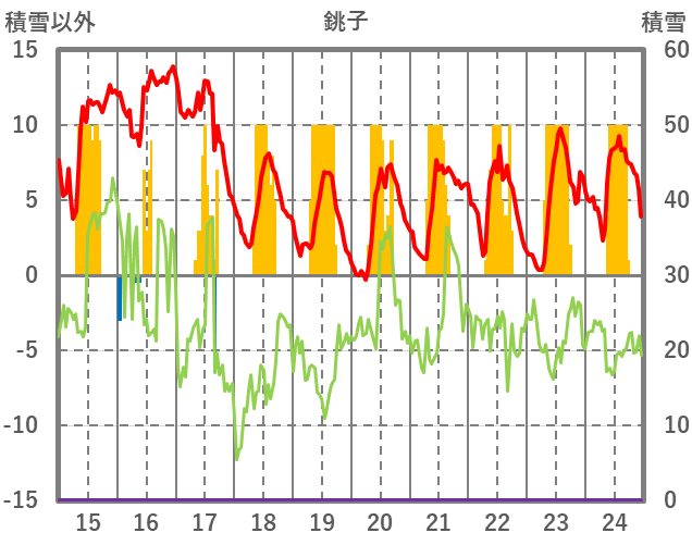 | 日 | 時 | 気温 | 降水 | 風向/風速 | 日照 | 積雪 | 降雪 |