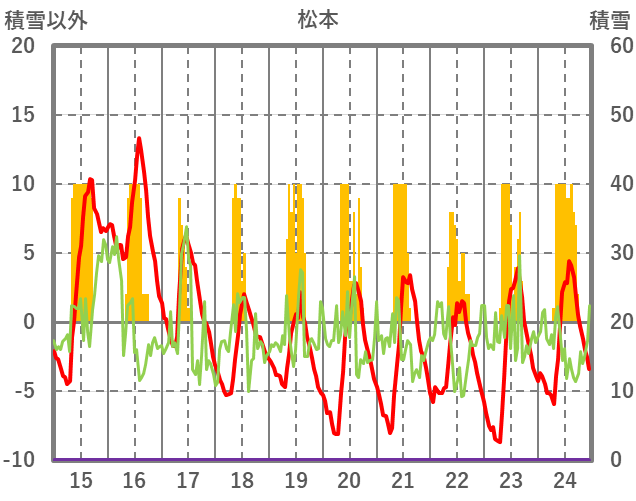 | 日 | 時 | 気温 | 降水 | 風向/風速 | 日照 | 積雪 | 降雪 |