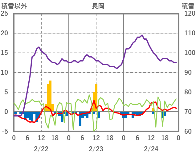 | 日 | 時 | 気温 | 降水 | 風向/風速 | 日照 | 積雪 | 降雪 |