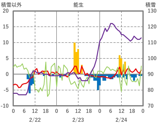 | 日 | 時 | 気温 | 降水 | 風向/風速 | 日照 | 積雪 | 降雪 |