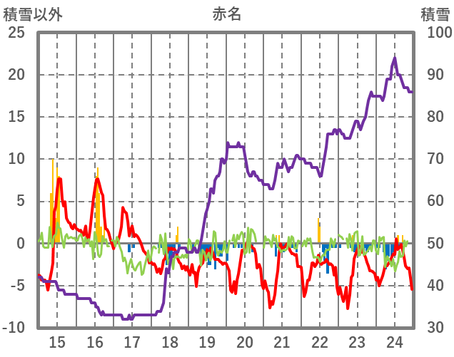 | 日 | 時 | 気温 | 降水 | 風向/風速 | 日照 | 積雪 | 降雪 |
