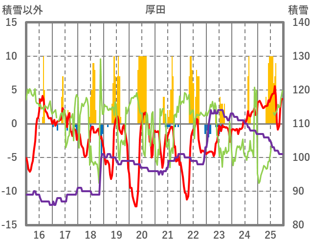 | 日 | 時 | 気温 | 降水 | 風向/風速 | 日照 | 積雪 | 降雪 |