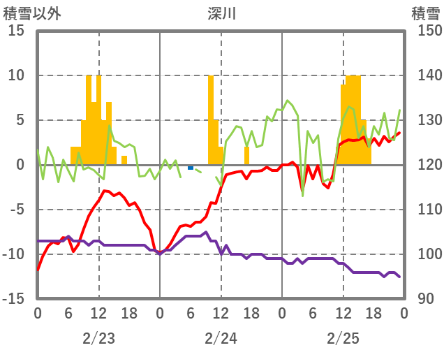 | 日 | 時 | 気温 | 降水 | 風向/風速 | 日照 | 積雪 | 降雪 |