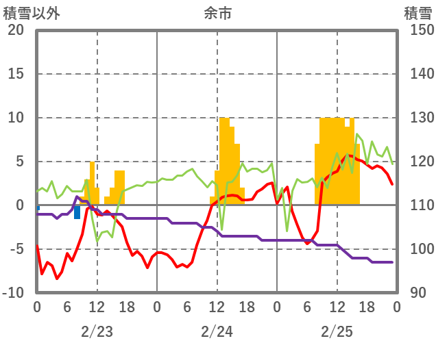 | 日 | 時 | 気温 | 降水 | 風向/風速 | 日照 | 積雪 | 降雪 |