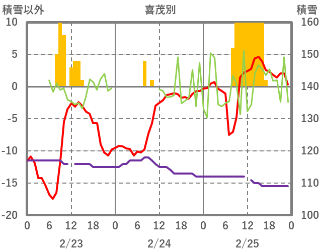 | 日 | 時 | 気温 | 降水 | 風向/風速 | 日照 | 積雪 | 降雪 |
