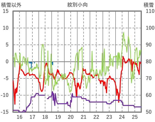 | 日 | 時 | 気温 | 降水 | 風向/風速 | 日照 | 積雪 | 降雪 |