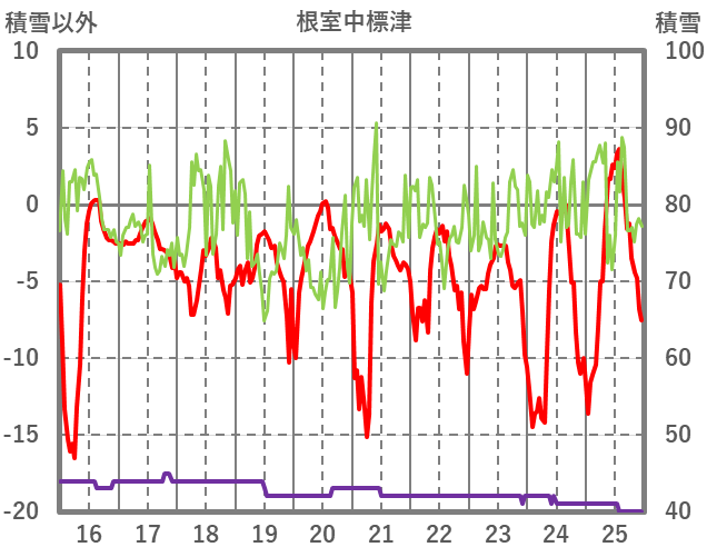| 日 | 時 | 気温 | 降水 | 風向/風速 | 日照 | 積雪 | 降雪 |