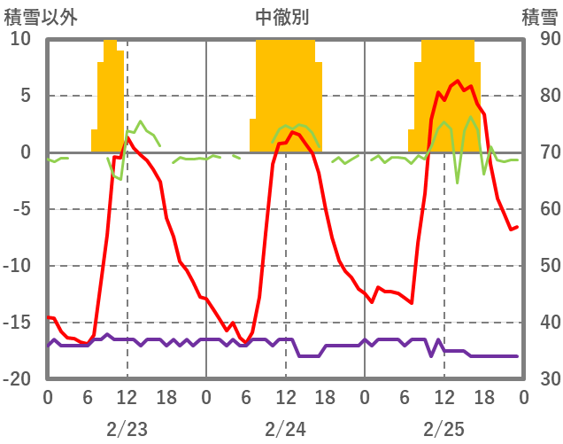 | 日 | 時 | 気温 | 降水 | 風向/風速 | 日照 | 積雪 | 降雪 |