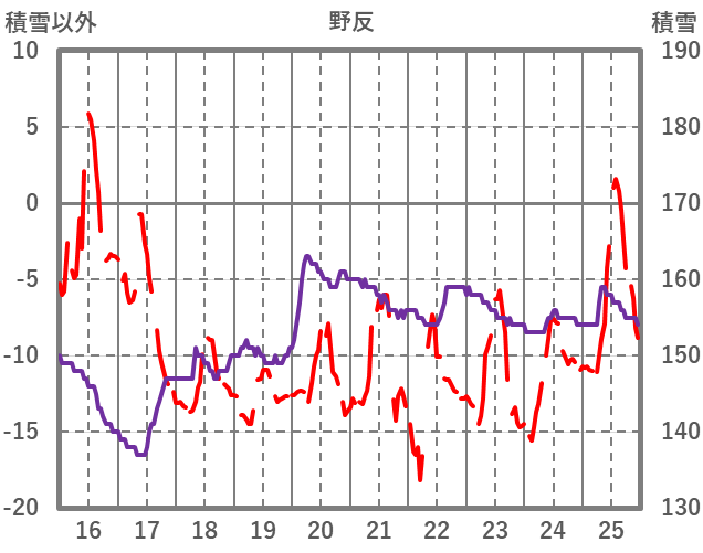 | 日 | 時 | 気温 | 降水 | 風向/風速 | 日照 | 積雪 | 降雪 |