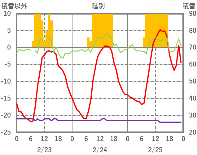 | 日 | 時 | 気温 | 降水 | 風向/風速 | 日照 | 積雪 | 降雪 |