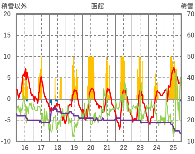 | 日 | 時 | 気温 | 降水 | 風向/風速 | 日照 | 積雪 | 降雪 |