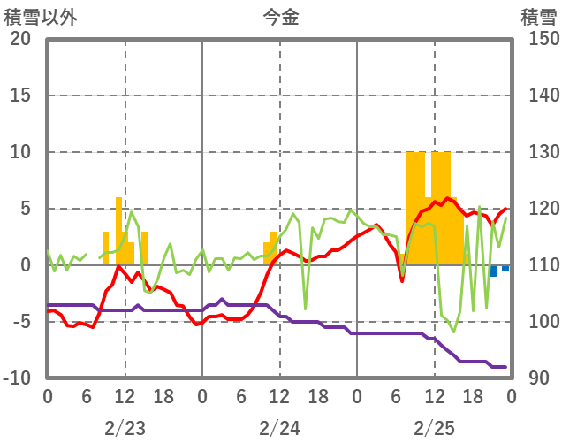 | 日 | 時 | 気温 | 降水 | 風向/風速 | 日照 | 積雪 | 降雪 |