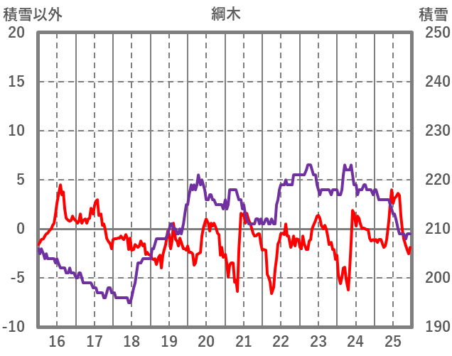 | 日 | 時 | 気温 | 降水 | 風向/風速 | 日照 | 積雪 | 降雪 |