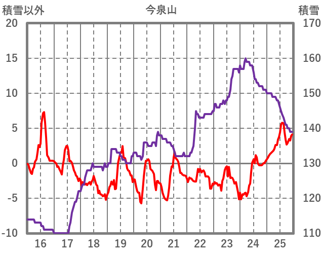 | 日 | 時 | 気温 | 降水 | 風向/風速 | 日照 | 積雪 | 降雪 |