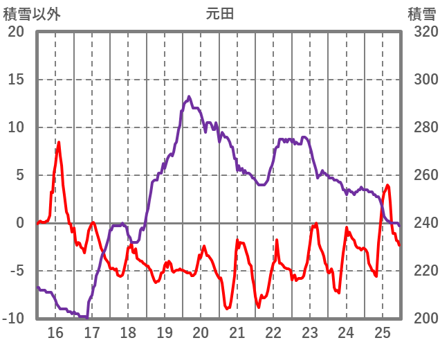 | 日 | 時 | 気温 | 降水 | 風向/風速 | 日照 | 積雪 | 降雪 |