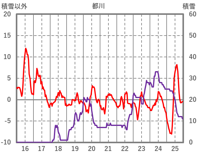 | 日 | 時 | 気温 | 降水 | 風向/風速 | 日照 | 積雪 | 降雪 |