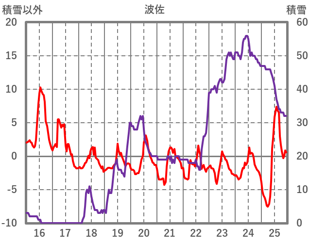 | 日 | 時 | 気温 | 降水 | 風向/風速 | 日照 | 積雪 | 降雪 |