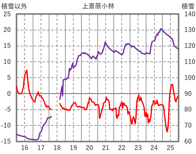 | 日 | 時 | 気温 | 降水 | 風向/風速 | 日照 | 積雪 | 降雪 |