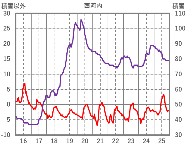 | 日 | 時 | 気温 | 降水 | 風向/風速 | 日照 | 積雪 | 降雪 |