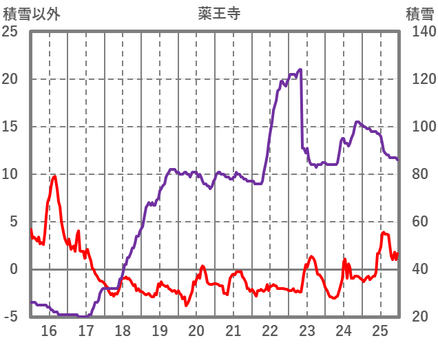 | 日 | 時 | 気温 | 降水 | 風向/風速 | 日照 | 積雪 | 降雪 |