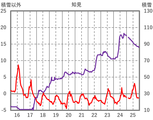 | 日 | 時 | 気温 | 降水 | 風向/風速 | 日照 | 積雪 | 降雪 |