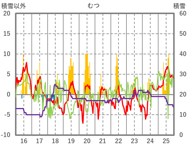 | 日 | 時 | 気温 | 降水 | 風向/風速 | 日照 | 積雪 | 降雪 |