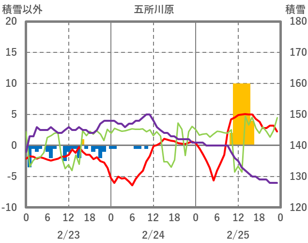 | 日 | 時 | 気温 | 降水 | 風向/風速 | 日照 | 積雪 | 降雪 |