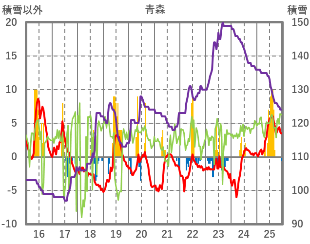 | 日 | 時 | 気温 | 降水 | 風向/風速 | 日照 | 積雪 | 降雪 |